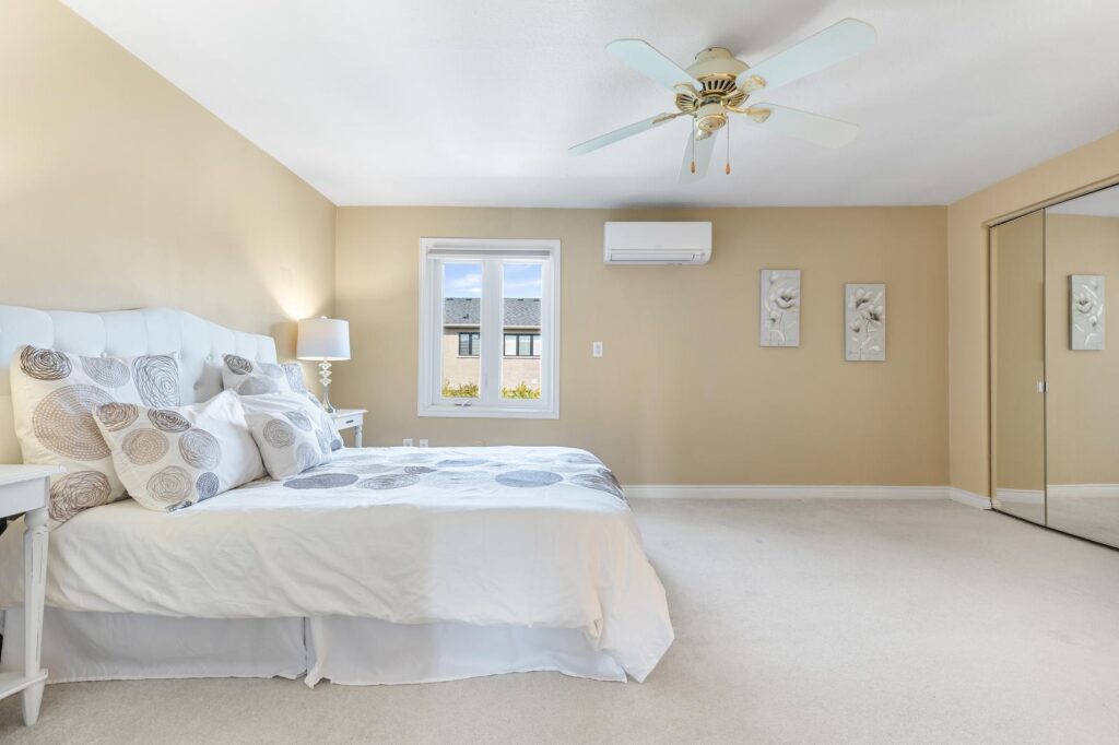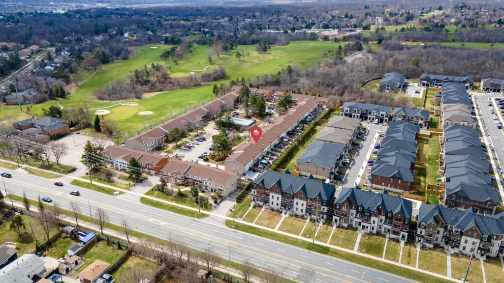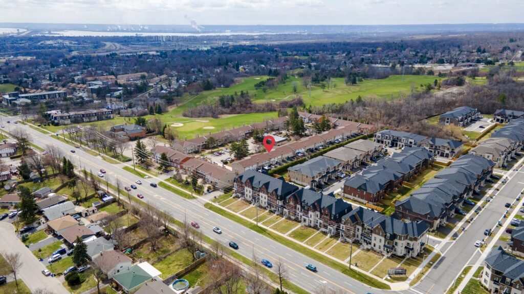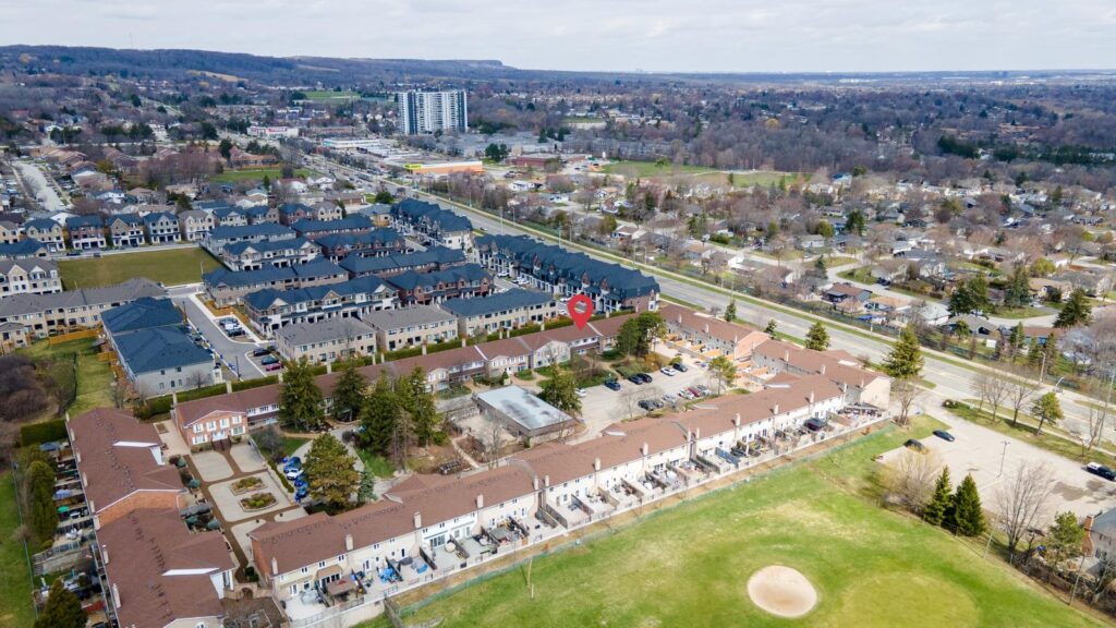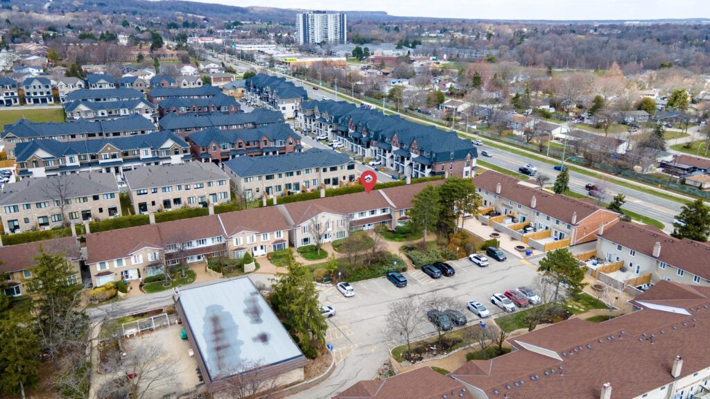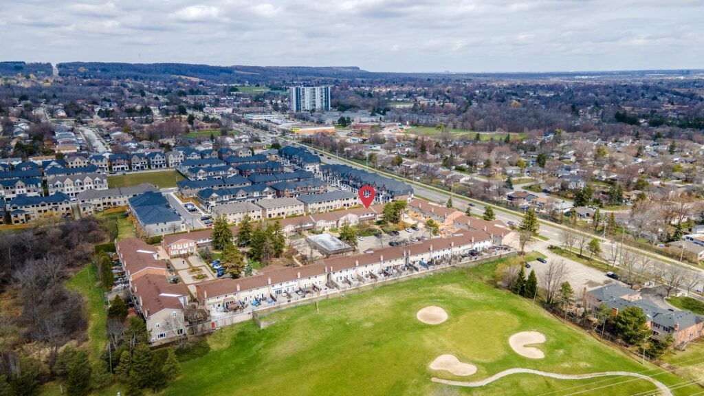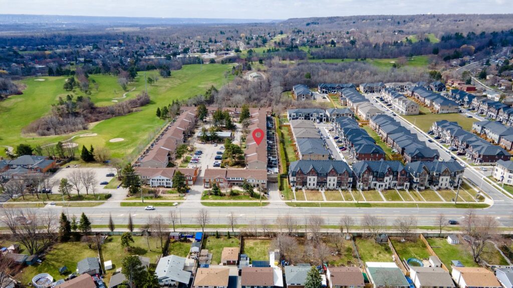 Welcome to Wellington Green! this complex is a hidden gem in NW Burlington. Close to greenspace, schools, Tyandaga Golf Course, Downtown Burlington, restaurants, shopping, the lake and more! This townhome has been lovingly maintained and tastefully updated – including hardwood flooring in the open concept living/dining room, renovated bathrooms, additional kitchen cupboards, newer kitchen sink and faucet, ceiling fan, grab bars in upper baths, heat pump, attic insulation and more. The bright kitchen overlooks a cozy family room with gas fireplace and offers a walkout to the private backyard. The upper level boasts a large primary bedroom complete with its own ensuite. This home features 3 bedrooms, 2.5 baths & a fully finished basement. The spacious rec room is the perfect place to unwind. There’s also a bonus room in the basement that could serve as a guest room or den. The laundry room provides access to the underground garage. Four year old heat pum provides more efficient heating and cooling throughout the home. With exclusive parking for 2 vehicles – one underground and one surface space – this makes for a great starter or downsizer’s home. Must be seen to be appreciated.